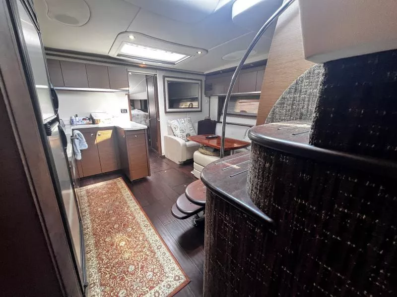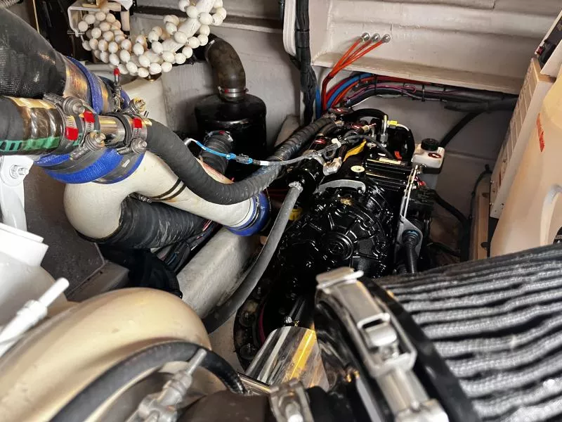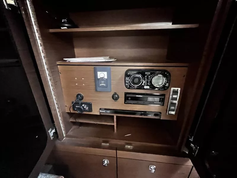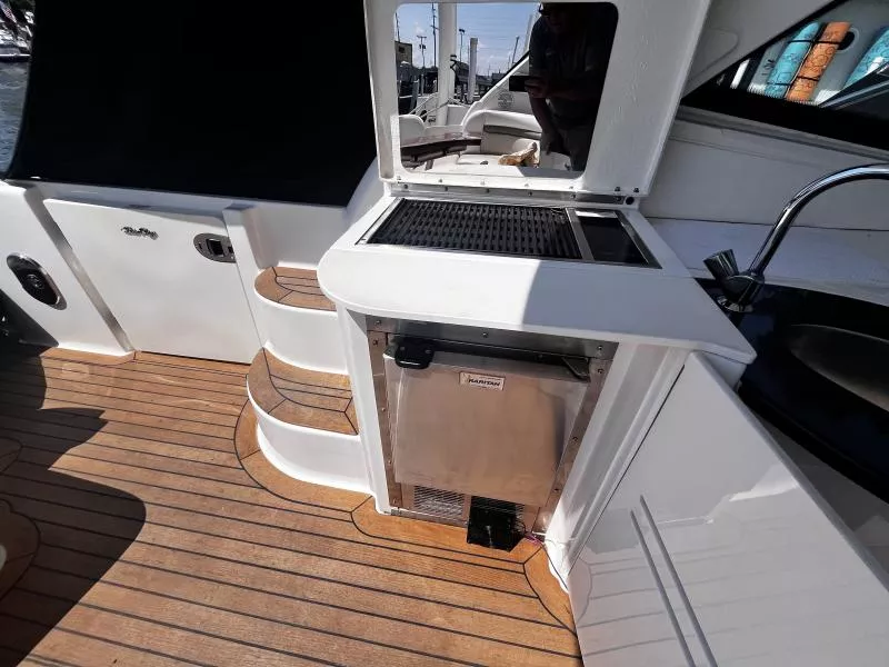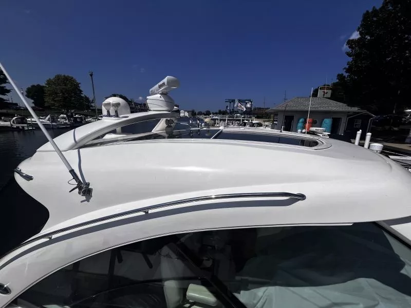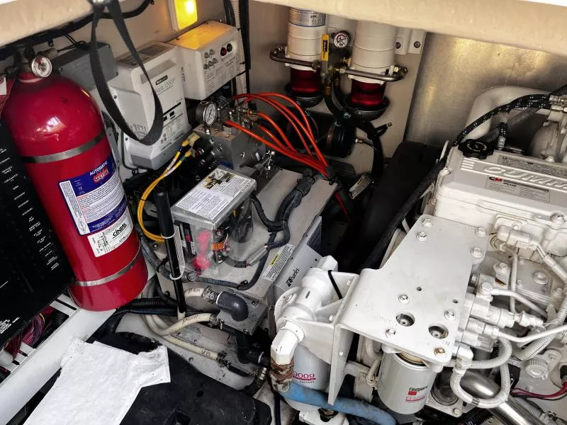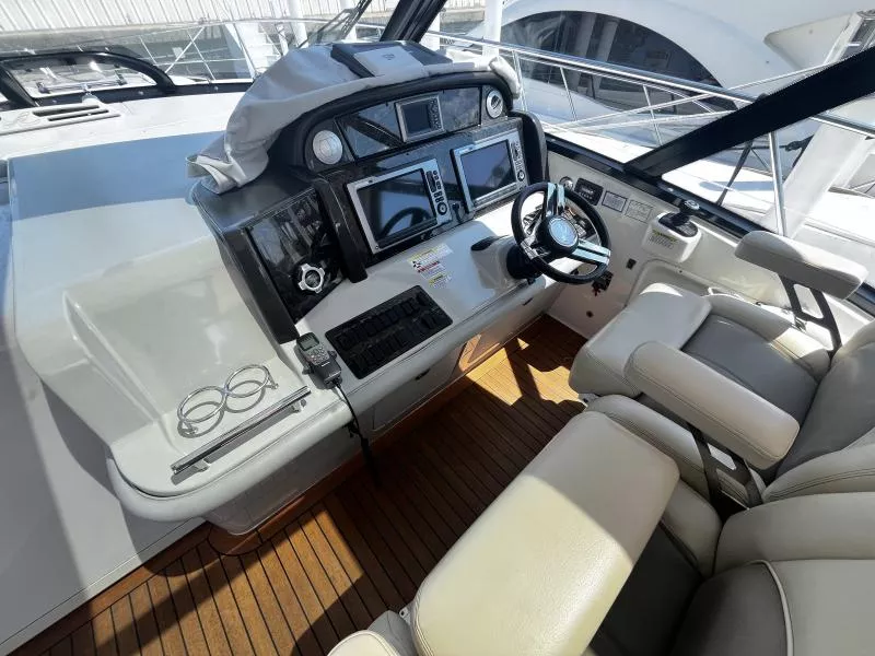 Side Curtains, Aft Curtains, Carbon Monoxide System, Halon System in Bilge, Fire Extinguisher, Flare kit, Dock lines, Life Jackets, First Aid Kit,Anchor, Anchor line, Boat Hook, Boat Manuals, Engine Manuals, Shore Power Cord, Hydraulic Swim Platform, Fiberglass Hardtop, Anchor Windlass, Air Conditioning, Heating,, Battery Converter, Isoboost System, Battery switch-single, Battery switch-dual, Windshield Wipers, VacuFlush System w/holding tank, Seperate Head and Shower,Hot Water System, Transom Shower (cold only),Transom Shower (hot and cold),Pressure Water System, Hot Water Tank ,Dockside Pressure, Refrigerator/Freezer, Electric Stove, Microwave, Convection Oven, Coffee Maker, Ice Maker in cockpit, Cockpit Wet Bar, Grill Cockpit, Shore Power 50 AMP, Speed Gauge, Depth Gauge, Hourmeter, Depth Sounder, Chartplotter, Radar, Autopilot, VHF Radio, Horn, Trim Tabs, Auto Trim Tabs, Stereo in cabin, Stereo in cockpit Bluetooth connectivity, CD Player, Satellite TV system
