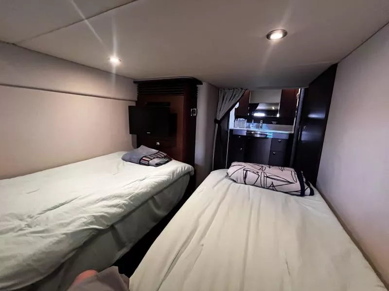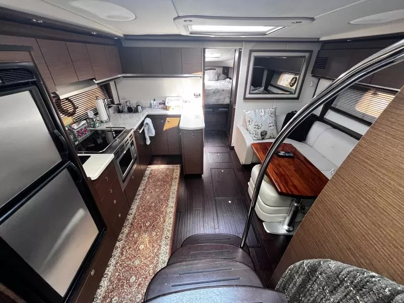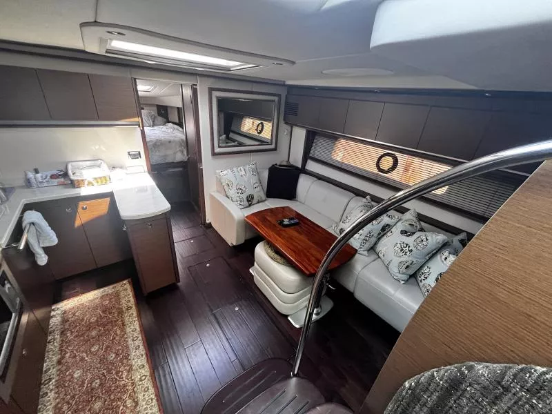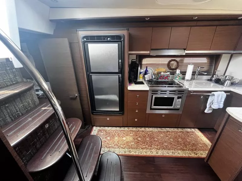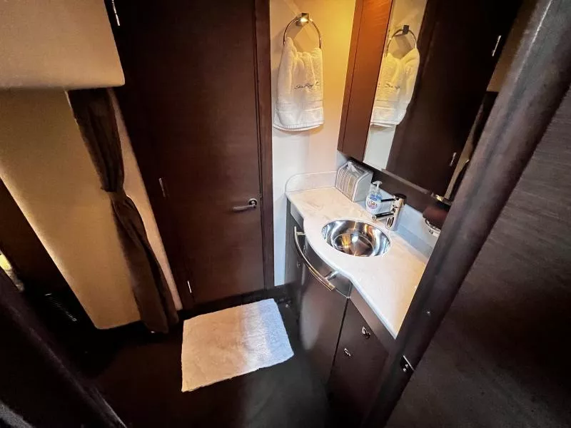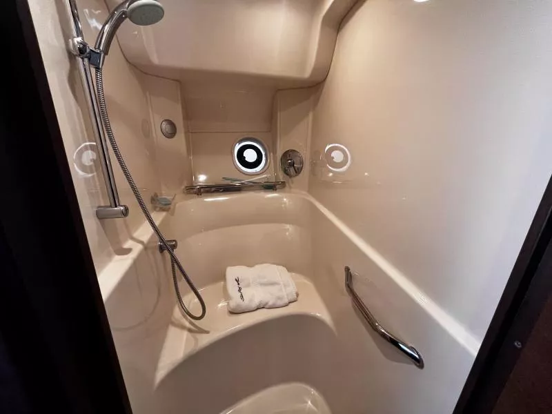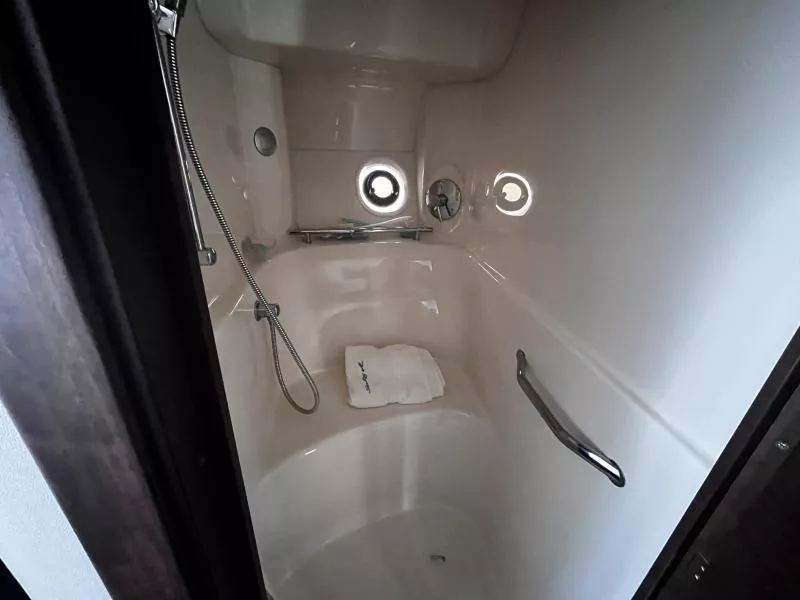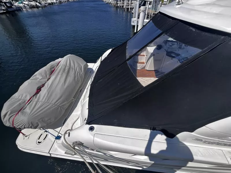 Side Curtains, Aft Curtains, Carbon Monoxide System, Halon System in Bilge, Fire Extinguisher, Flare kit, Dock lines, Life Jackets, First Aid Kit,Anchor, Anchor line, Boat Hook, Boat Manuals, Engine Manuals, Shore Power Cord, Hydraulic Swim Platform, Fiberglass Hardtop, Anchor Windlass, Air Conditioning, Heating,, Battery Converter, Isoboost System, Battery switch-single, Battery switch-dual, Windshield Wipers, VacuFlush System w/holding tank, Seperate Head and Shower,Hot Water System, Transom Shower (cold only),Transom Shower (hot and cold),Pressure Water System, Hot Water Tank ,Dockside Pressure, Refrigerator/Freezer, Electric Stove, Microwave, Convection Oven, Coffee Maker, Ice Maker in cockpit, Cockpit Wet Bar, Grill Cockpit, Shore Power 50 AMP, Speed Gauge, Depth Gauge, Hourmeter, Depth Sounder, Chartplotter, Radar, Autopilot, VHF Radio, Horn, Trim Tabs, Auto Trim Tabs, Stereo in cabin, Stereo in cockpit Bluetooth connectivity, CD Player, Satellite TV system