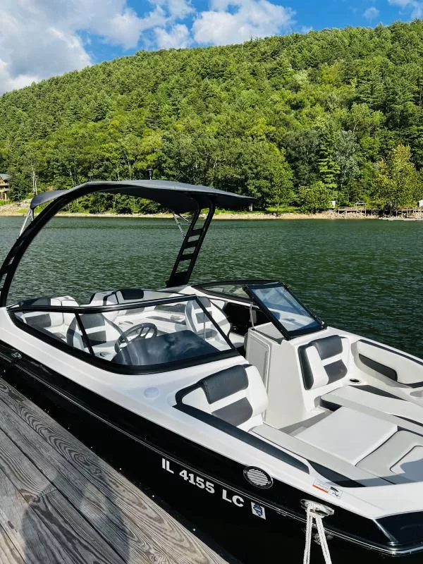 Features: Arch with Bimini top, mooring cover, depth sounder, USB/AUX input, 12V outlet, and cockpit drainage system (CDS).
