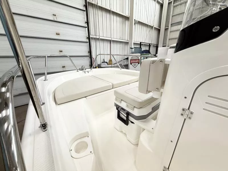 Seating & Rails: Split Bow Rail, Bow Cushion, White Rub Rail with Stainless Steel Insert