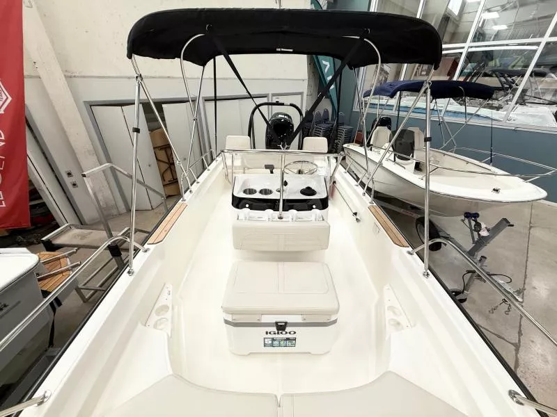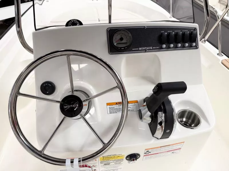 The classic, unsinkable 170 Montauk boat is a multi-purpose 17-foot inshore center console boat that can do anything. It’s clean, timeless style, open layout, and easy-to-own utilitarian design make it ideal for fishing, cruising the beach, or just relaxing with family on the weekend. Integrated Simrad® technology at the helm, a 25-gal. fuel tank, and a large forward fish box that doubles as storage gives you everything you need to enjoy the day no matter how you choose to spend it.