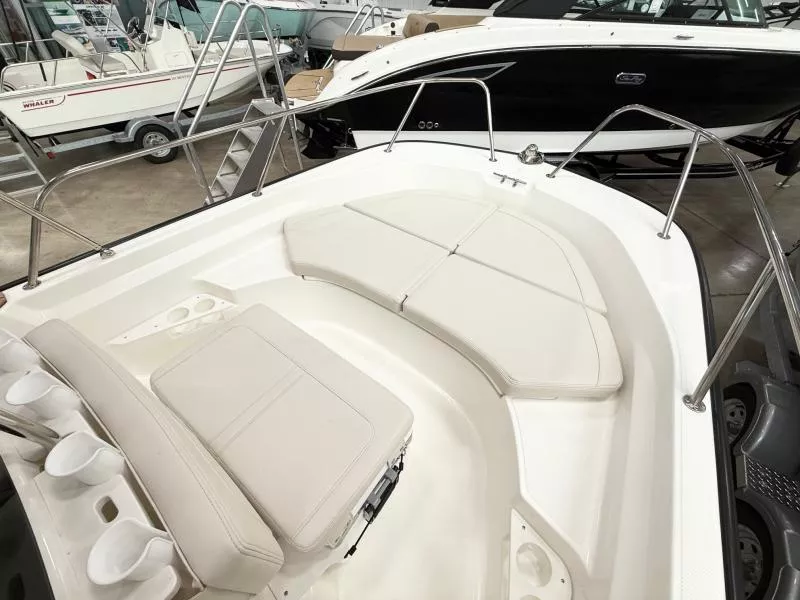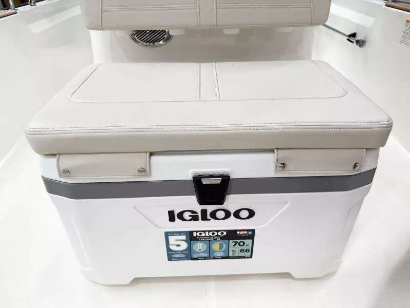 - Optional Fishing Package includes tackle drawers, console-mounted rod holders, and 72-quart cooler seat with cushion and backrest.