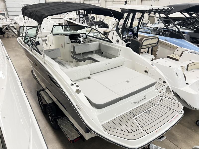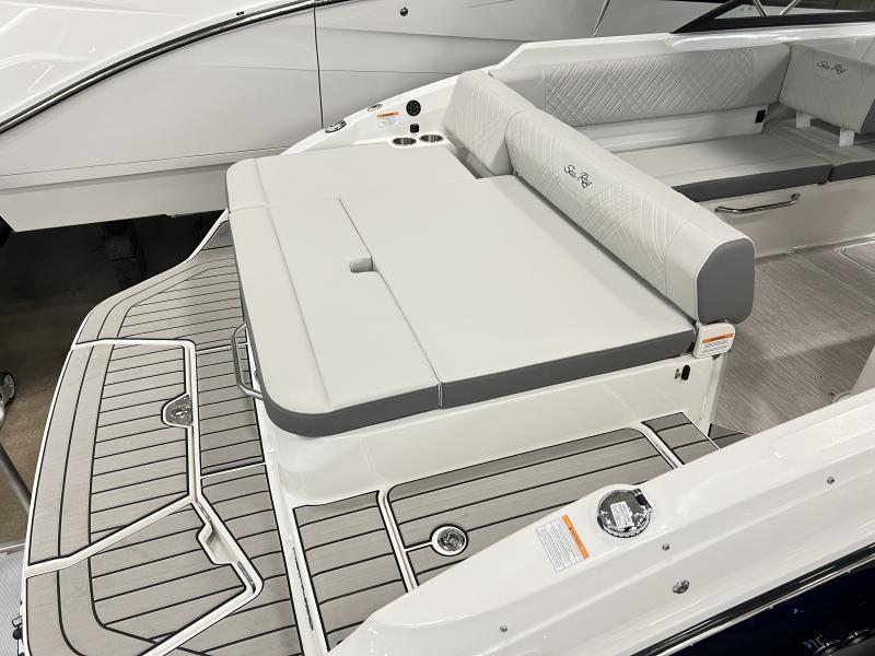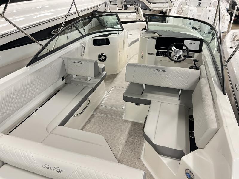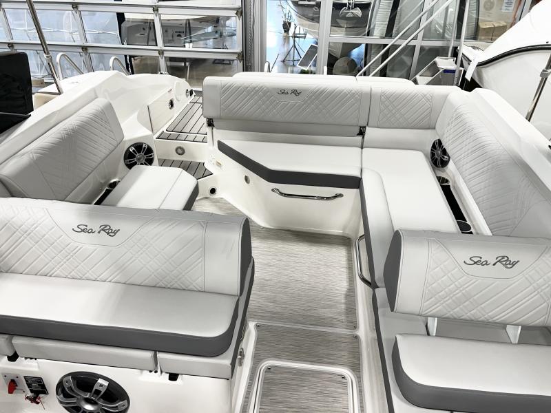 Hull Side Color - Sea Ray Blue, Hull Bottom - White, Black Canvas, Cockpit Vinyl Color - Stone, Flooring Color - Grey, ECT 6.2L (300 PHP) MPI DTS Bravo 3 Stern Drive, Entertainment Bundle, Essential Bundle, Water System Bundle, Inductive Charging, Pressure Water System, Bow & Transom Sprayer., Premier Stereo Upgrade (Speakers/Subwoofer/AMP), Seadek on Swim Platform, Cockpit Cover with Tonneau Cover, Flag Pole & Base, U.S. Flag, Fender Clips, Bimini Top & Boot, Flooring, Cockpit - Infinity Woven Vinyl, Submersible Swim Platform - Manual, Interior Upholstery Upgrade, Fire Suppression System (FM 200) - Automatic, On Board Battery Charger, Vacuum Flush Head with Holding Tank, Transom Trim Switch