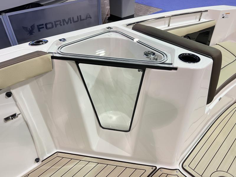 The 255 FSH SP H is powered by twin 1.8L SVHO Yamaha engines, delivering a combined 500 horsepower for thrilling performance and precision handling in a 25-foot center console package. With seating for up to 12, a spacious bow with cushioned backrests, and a versatile cockpit, it's ideal for fishing or family outings. The oversized in-floor storage locker easily accommodates gear and tackle, while the 7" Connext touchscreen, paired with Helm Master EX joystick control, provides effortless low-speed maneuvering and system management. A custom aluminum trailer ensures this jet boat stands out on both water and land.