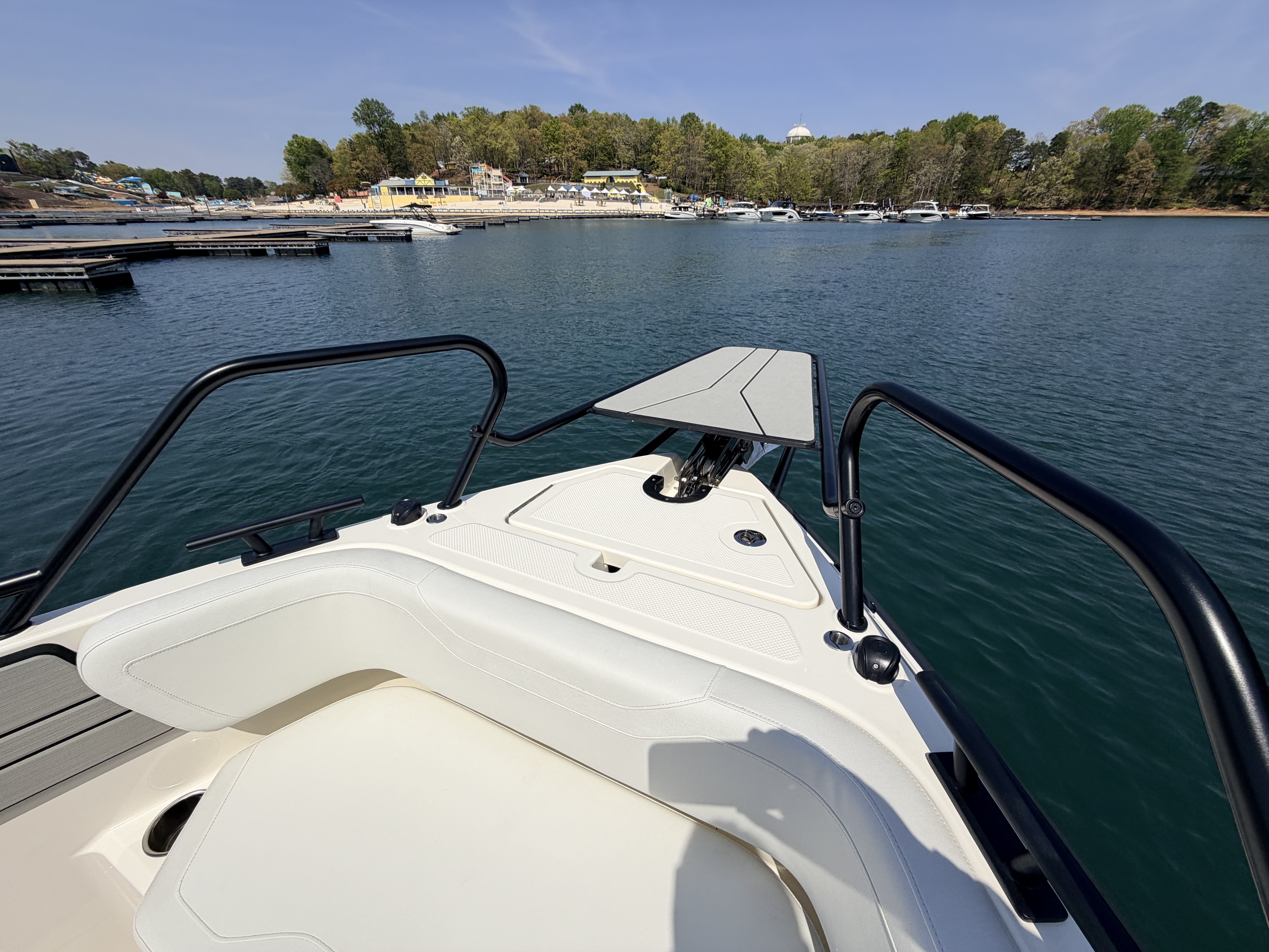 At the helm, the T30 is all business. A Simrad® NSX® 12” multifunction display, Mercury® SmartCraft® integration, and Active Trim put total control at your fingertips. Power options up to 450 horsepower ensure smooth acceleration, confident handling, and the ability to adapt to changing Lake Michigan conditions with ease.