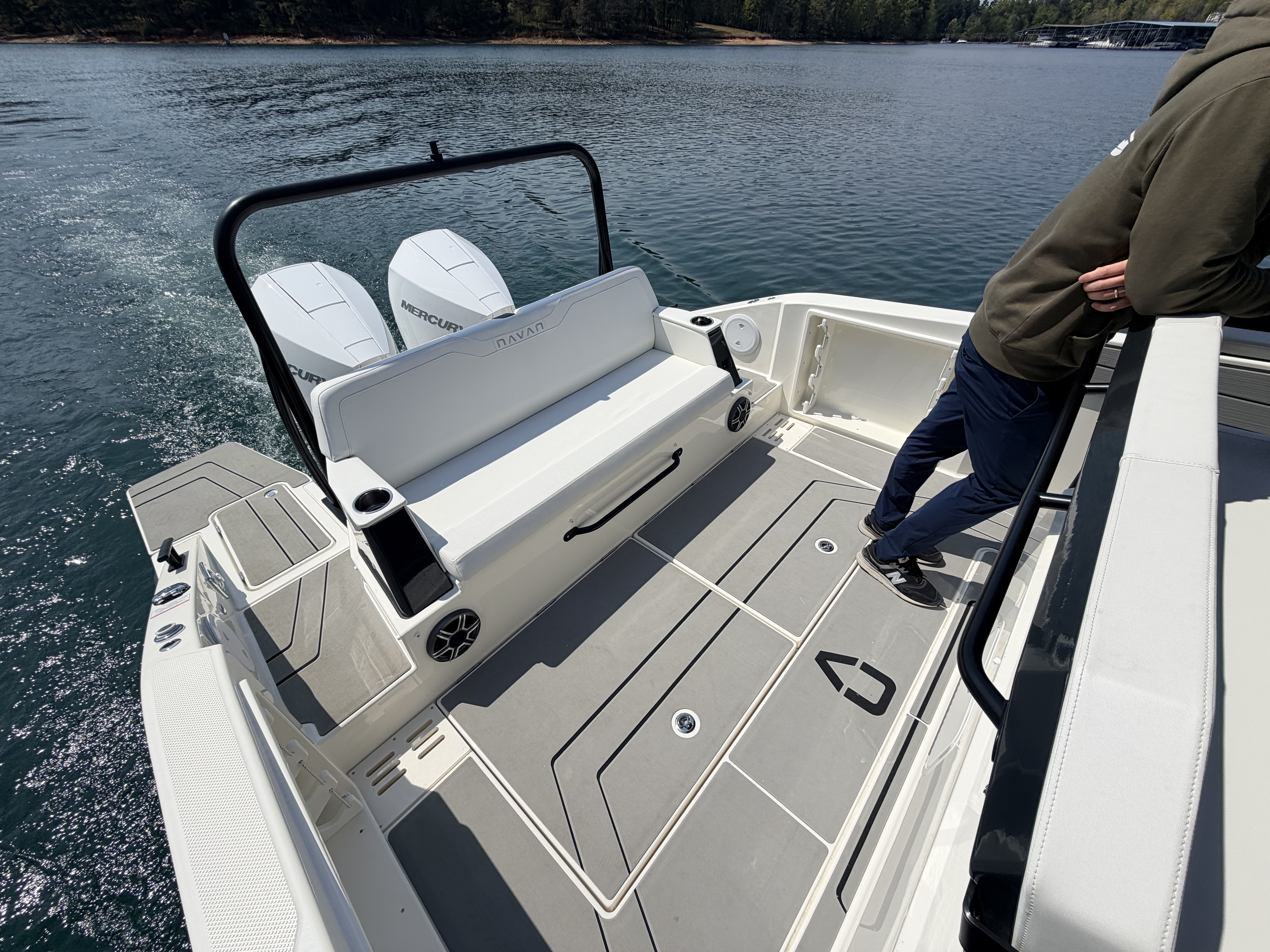 Below deck, the interior compartment offers surprising comfort for a center console—ideal for changing, storage, or optional amenities like an electric-flush head and sink. From sunset cruises to full-day adventures, the NAVAN T30 is designed to make every outing feel effortless.